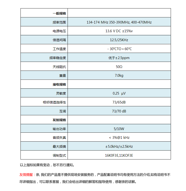 說明:以上條款均以摩托羅拉公司,威泰克斯,艾可慕,健伍公司的有關規定為準。