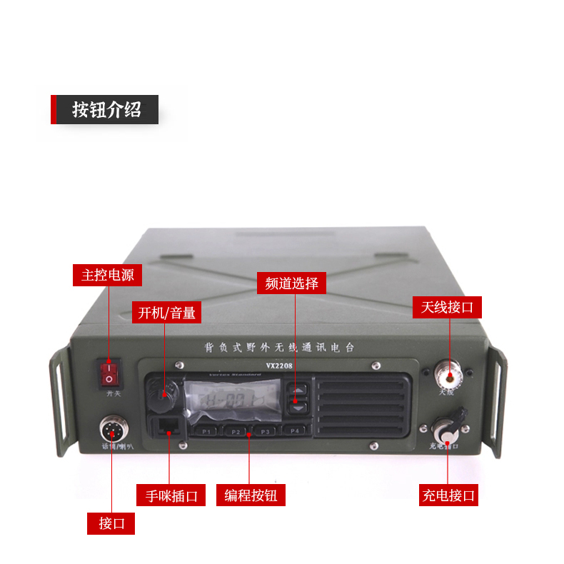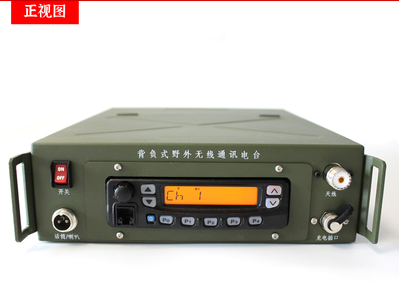 可選機型頻段,功率可調配置方便,內置鋰電池組供電。配專用充電器,背包和天線可方便背負或固定使用。