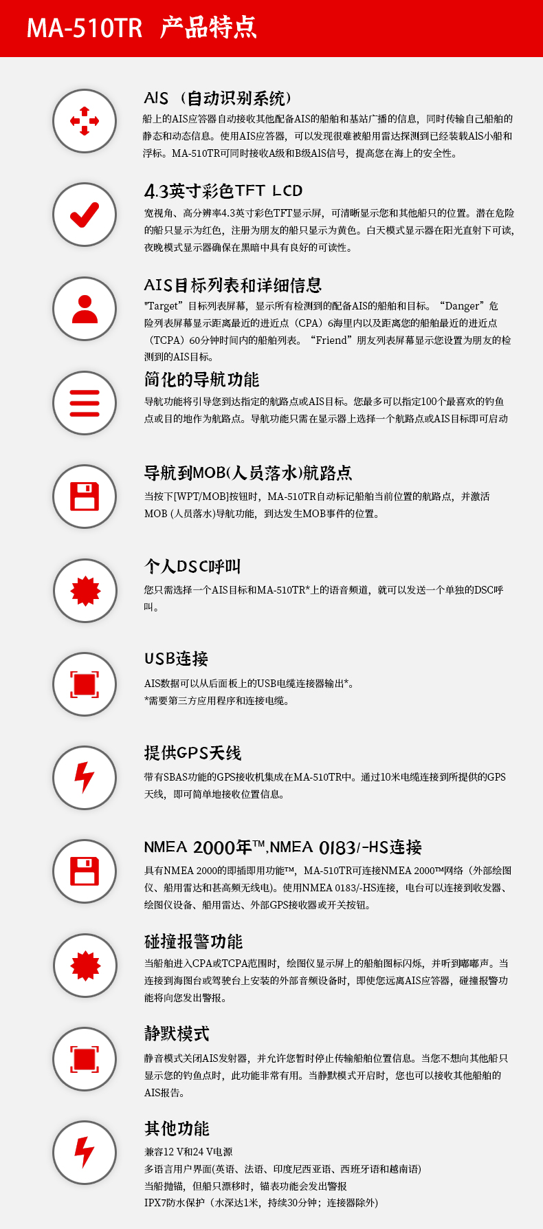 • 內置AIS自動識別系統,發射信號,提高航海安全性