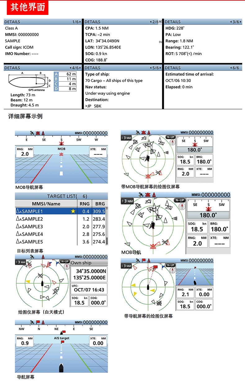 AIS系統可以提高航海安全性。 4.3英寸彩色TFT LCD,寬視角,高分辨率有助于白天和夜晚使用。 船只碰撞報功能。 簡化的導航功能,提高安全性行駛。